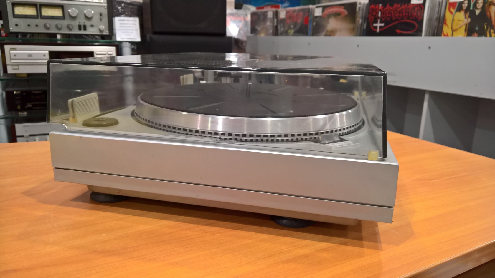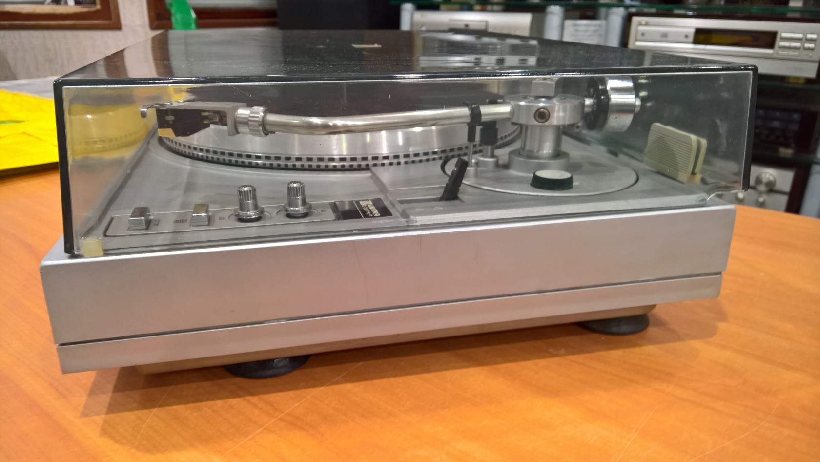 Выполнен проигрыватель на базе двухскоростного ЭПУ G-2021, со сверхтихоходным электродвигателем и прямым приводом. В ЭП имеются регулятор прижимной и компенсатор скатывающей силы, подстройка частоты вращения диска по стробоскопу, автостоп, микролифт, переключатель скорости и автовозврат тонарма по окончанию грампластинки. Частота вращения диска 33, 45 об/мин. Диапазон рабочих частот — 20 Гц–20 кГц. Коэффициент детонации — 0,1%. Относительный уровень рокота —66 дБ. Уровень фона -63 дБ. Габариты электропроигрывателя — 460х200х375 мм. Масса — 12 кг.