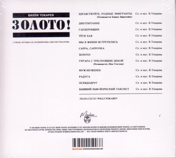 ТОКАРЕВ ВИЛЛИ - ЗОЛОТО (digipak)