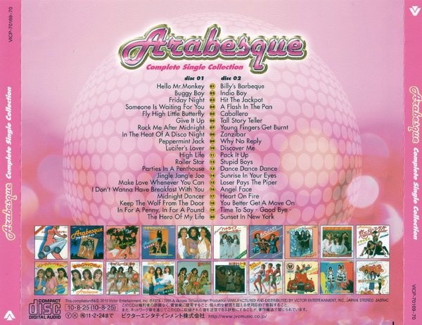 Complete single collection release from Arabesque including 40 songs on two discs. Features the high-fidelity SHM-CD format (fully compatible with standard CD players). A booklet features all Japan edition singles' jacket work.