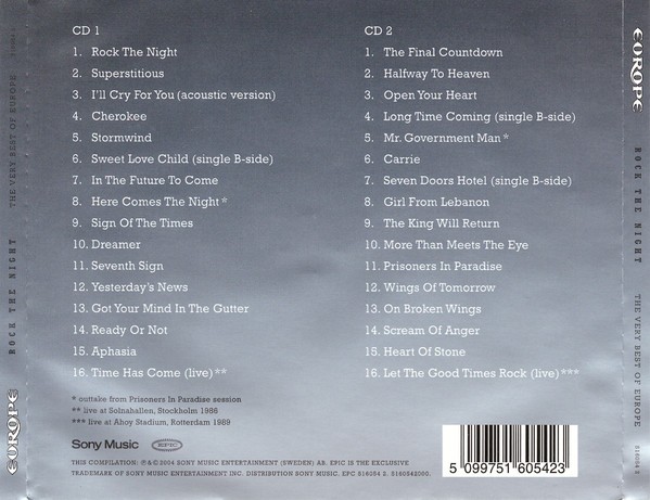 EUROPE - ROCK THE NIGHT - THE VERY BEST OF EUROPE