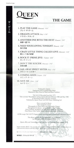 exclusive licence to EMI Records Ltd. ©2001 Queen Productions Ltd.