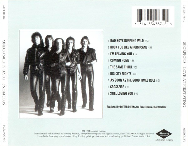 Mastering identical to Scorpions - Love At First Sting.
