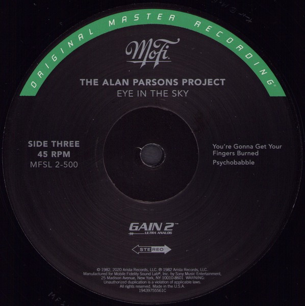Eye In The Sky was originally mixed to both analog tape and the Sony PCM 1610 digital system. For this release, the Original Analog Master Tape was utilized.