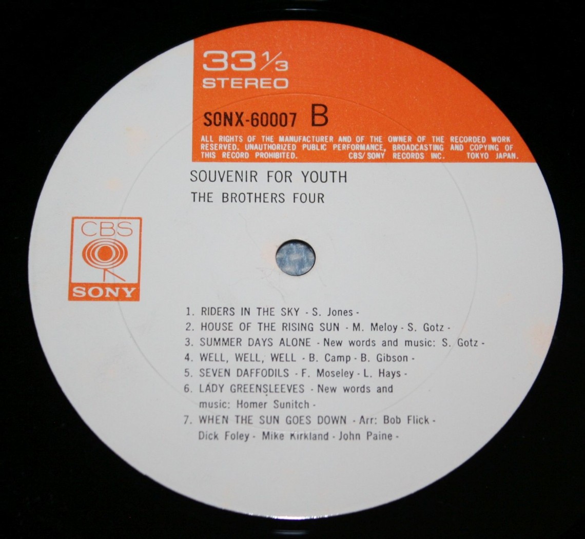 Каталог Виниловые пластинки BROTHERS FOUR - SOUVENIR FOR YOUTH