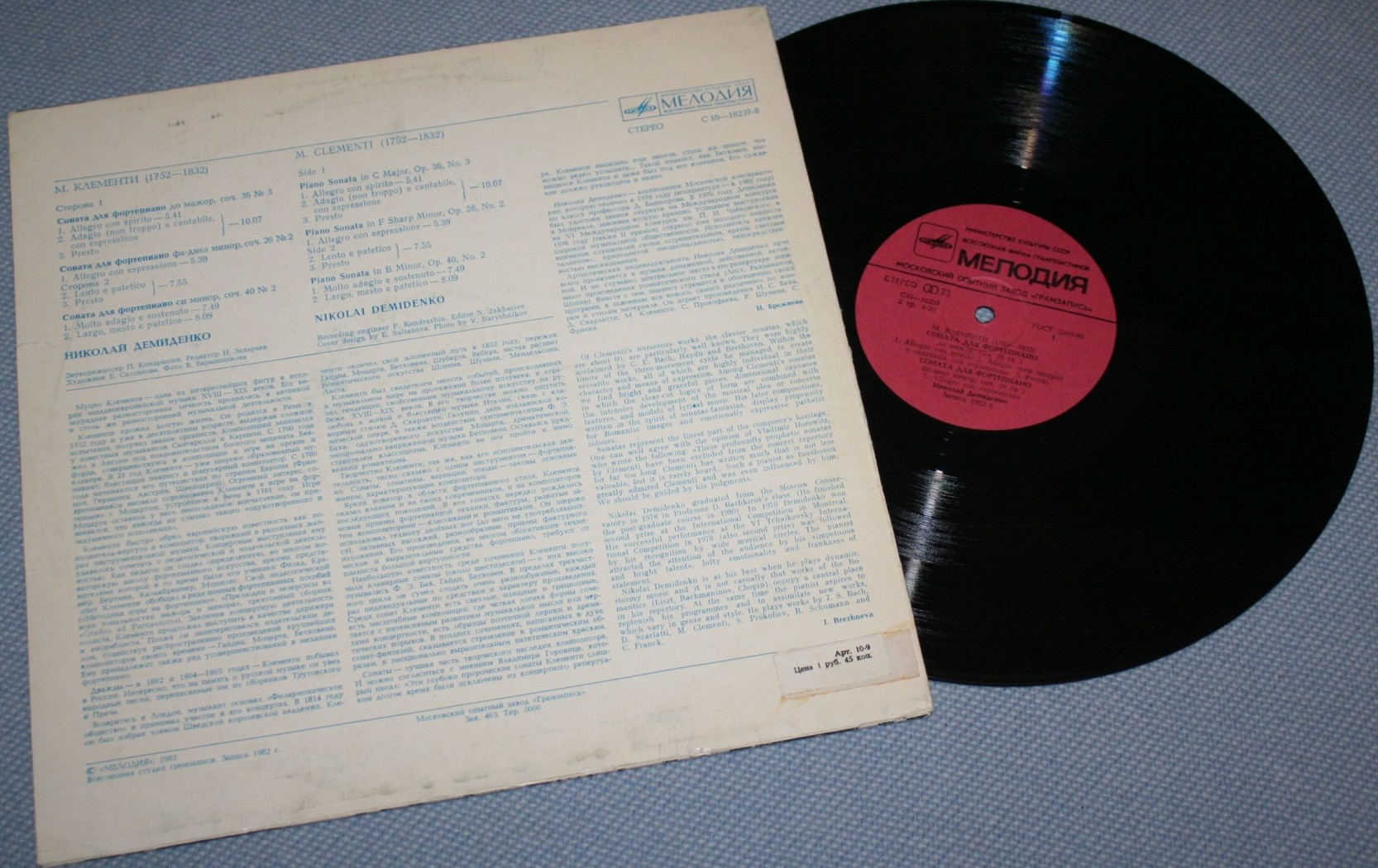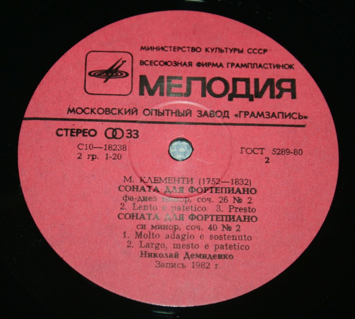 Каталог Виниловые пластинки CLEMENTI - СОНАТЫ ДЛЯ ФОРТЕПИАНО - НИКОЛАЙ ДЕМИДЕНКО