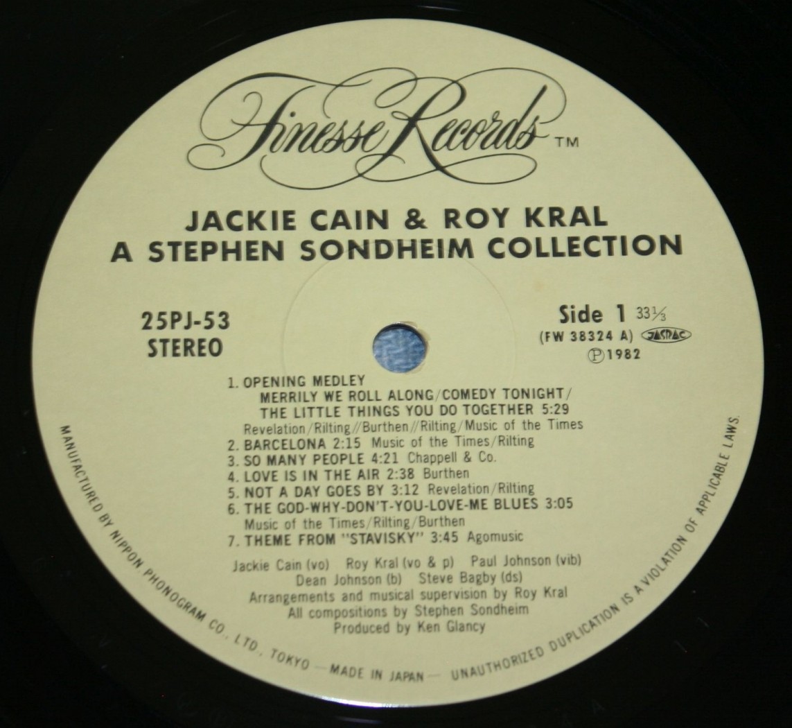 Каталог Виниловые пластинки JACKIE CAIN AND ROY KRAL - A STEPHEN SONDHEIM COLLECTION