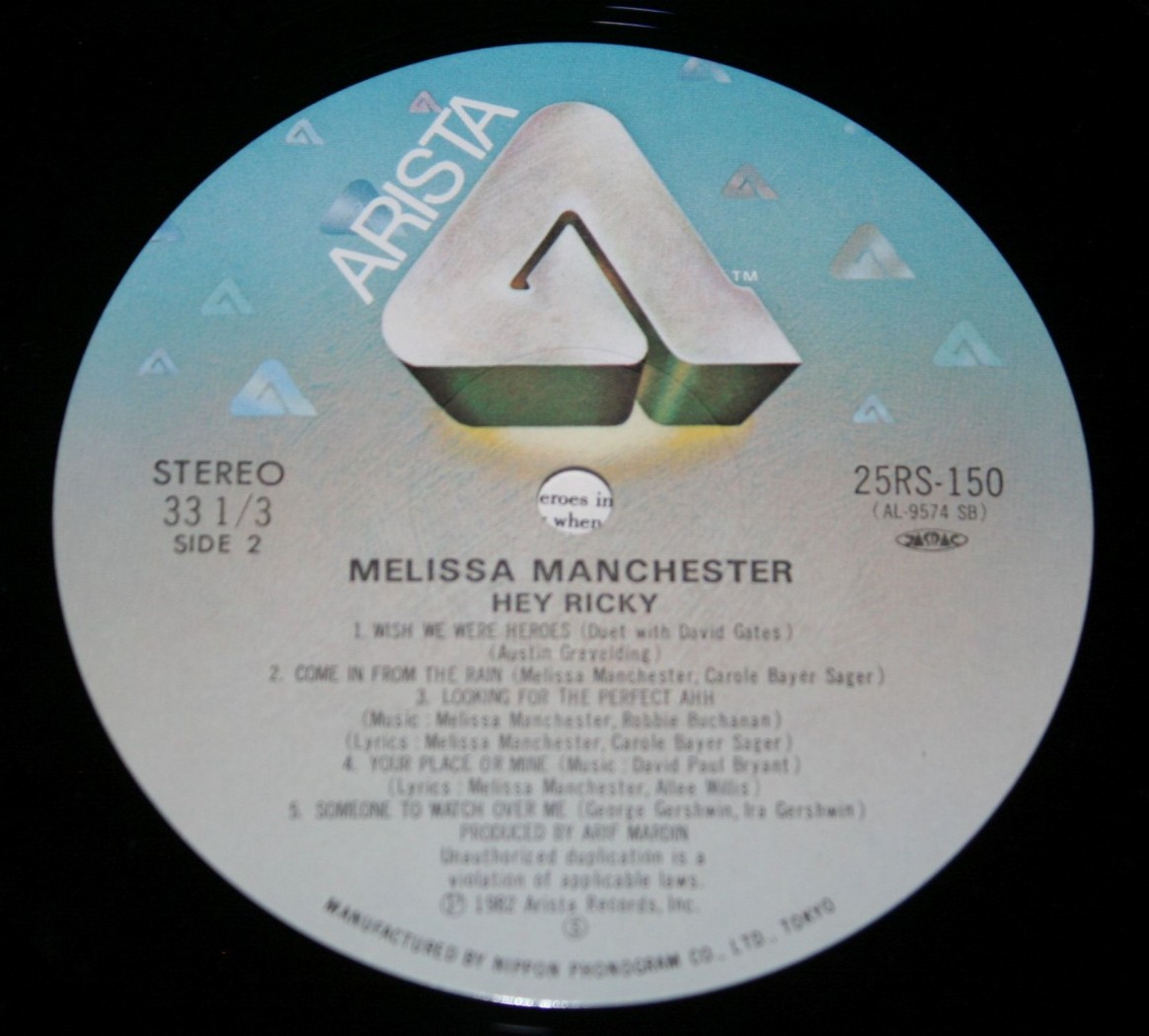 Каталог Виниловые пластинки MELISSA MANCHESTER - HEY RICKY