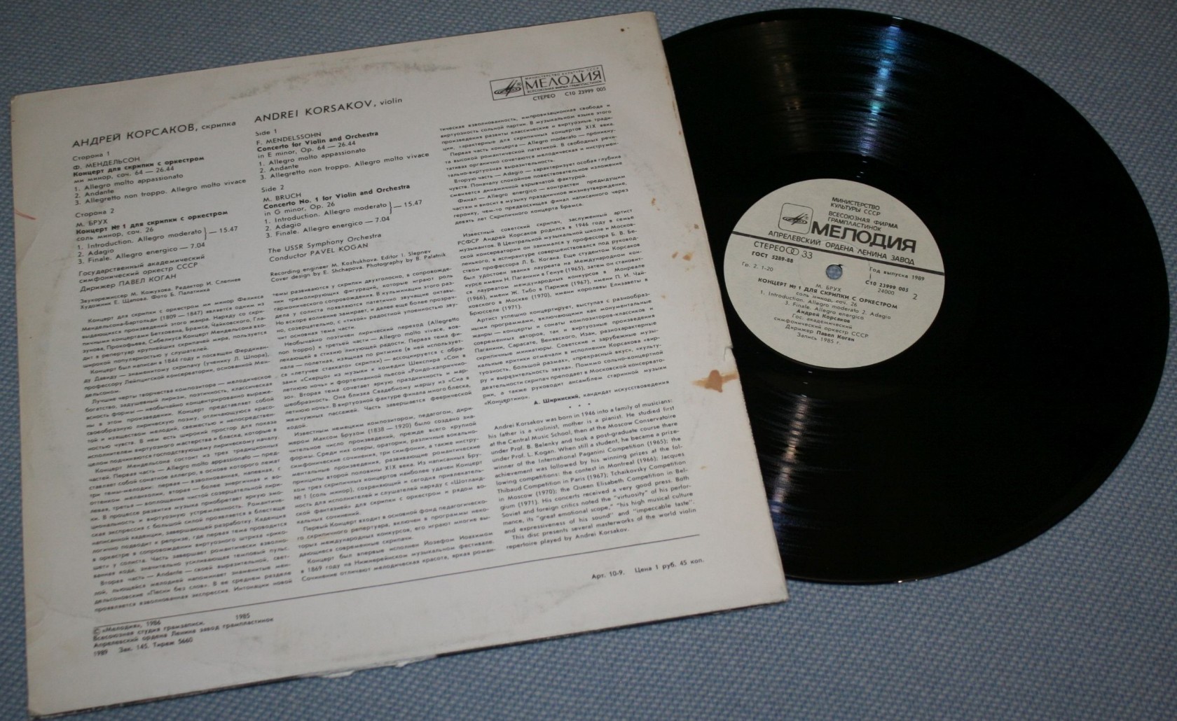 MENDELSSOHN/ BRUCH - КОНЦЕРТЫ ДЛЯ СКРИПКИ С ОРКЕСТРОМ - АНДРЕЙ КОРСАКОВ/ ПАВЕЛ КОГАН