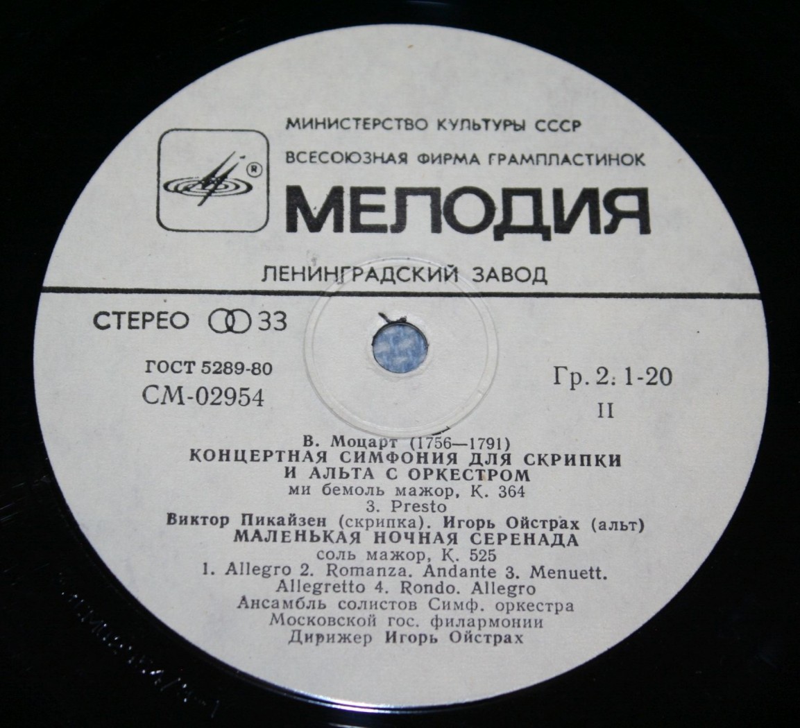 Альбом: КОНЦЕРТНАЯ СИМФОНИЯ/МАЛЕНЬКАЯ НОЧНАЯ СЕРЕНАДА- И.ОЙСТРАХ
