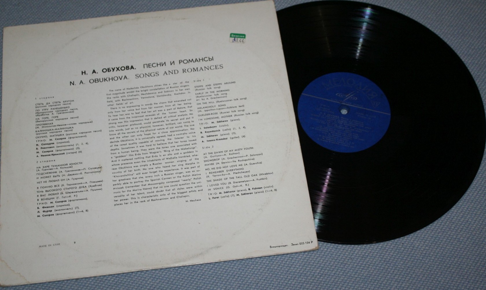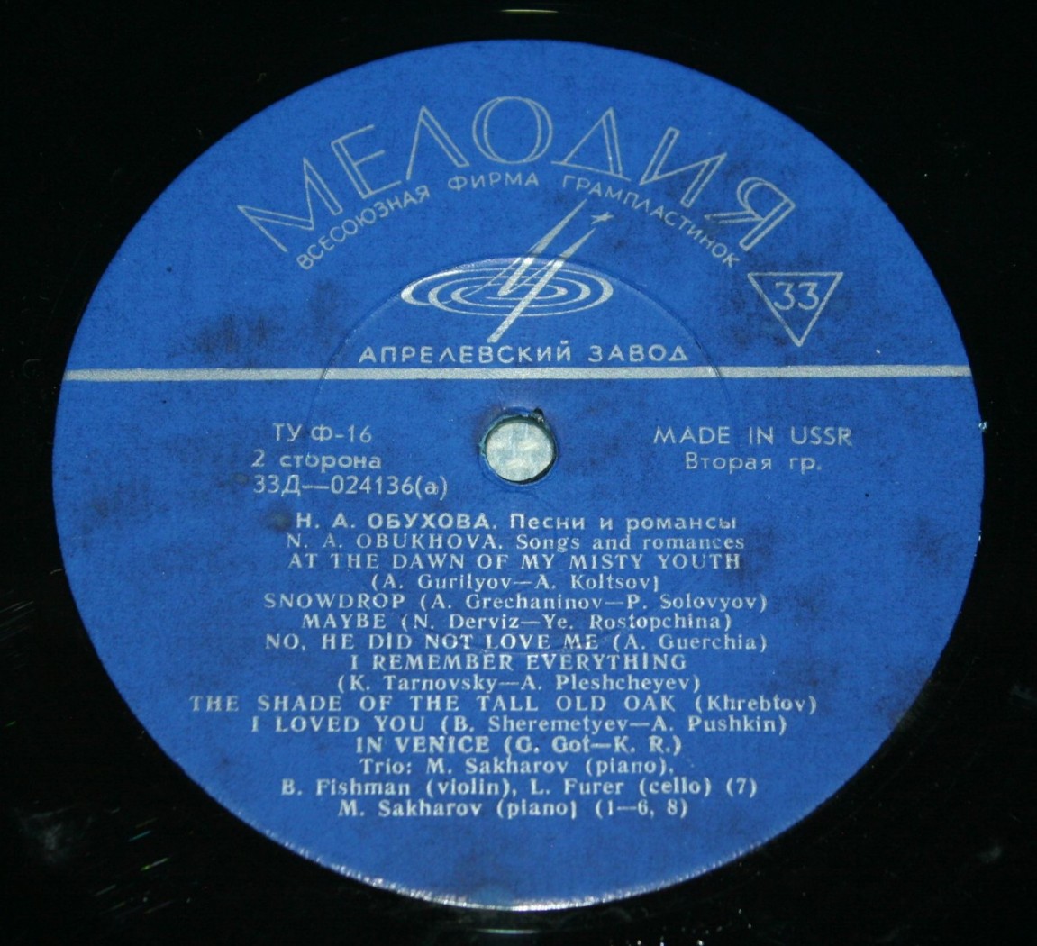 Каталог Виниловые пластинки ОБУХОВА НАДЕЖДА - ПЕСНИ И РОМАНСЫ
