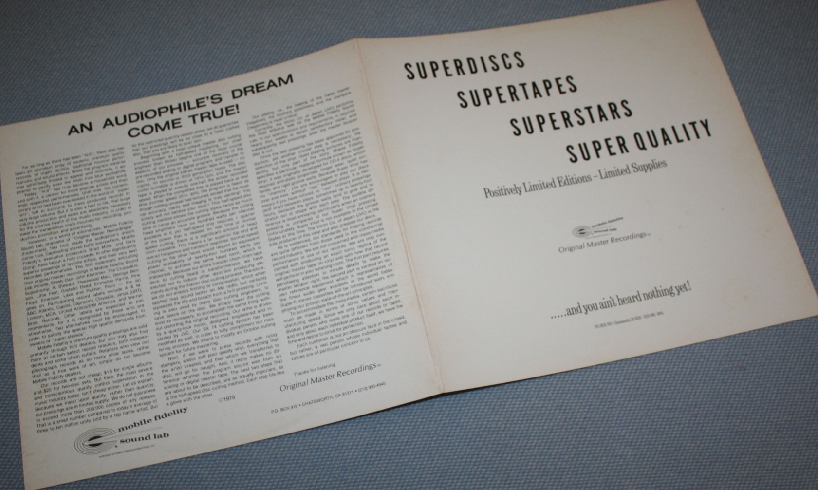 ex/nm, gt, MFSL 1-017, 1979