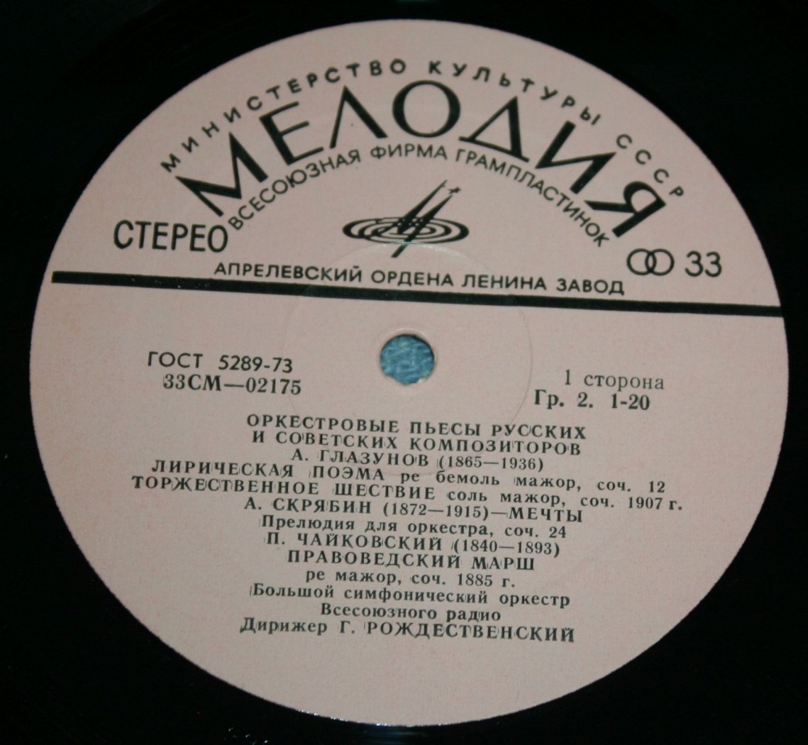 Каталог Виниловые пластинки ОРКЕСТРОВЫЕ ПЬЕСЫ РУССКИХ И СОВЕТСКИХ КОМПОЗИТОРОВ - ДИРИЖЕР Г. РОЖДЕСТВЕНСКИЙ